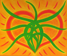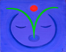When I paint, there is a feeling of deep inner stillness, alertness, and being present in the here and now ~ I am aware of strong currents of life energy coming through me ~ The colors and forms express this energetic world ~ the eyes, all knowing wisdom; the leaves, plant shapes, the natural world ~